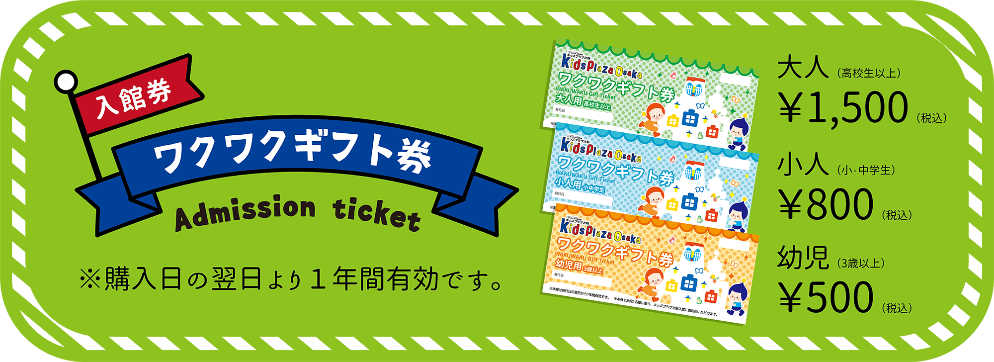 営業時間:11:00〜17:00(キッズプラザ大阪の休館日を除く毎日)
